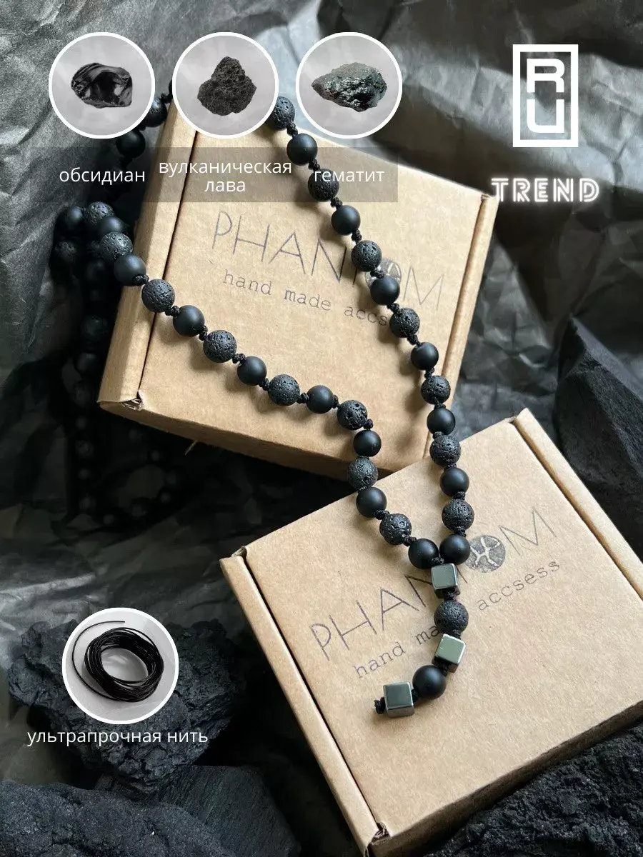 Представляем вашему вниманию потрясающую мужскую подвеску на шею, выполненную из обсидиана, вулканической лавы и гематита. Это изделие ручной работы, созданное на прочной нейлоновой нити, которая ведет свое начало из недр Сибири.